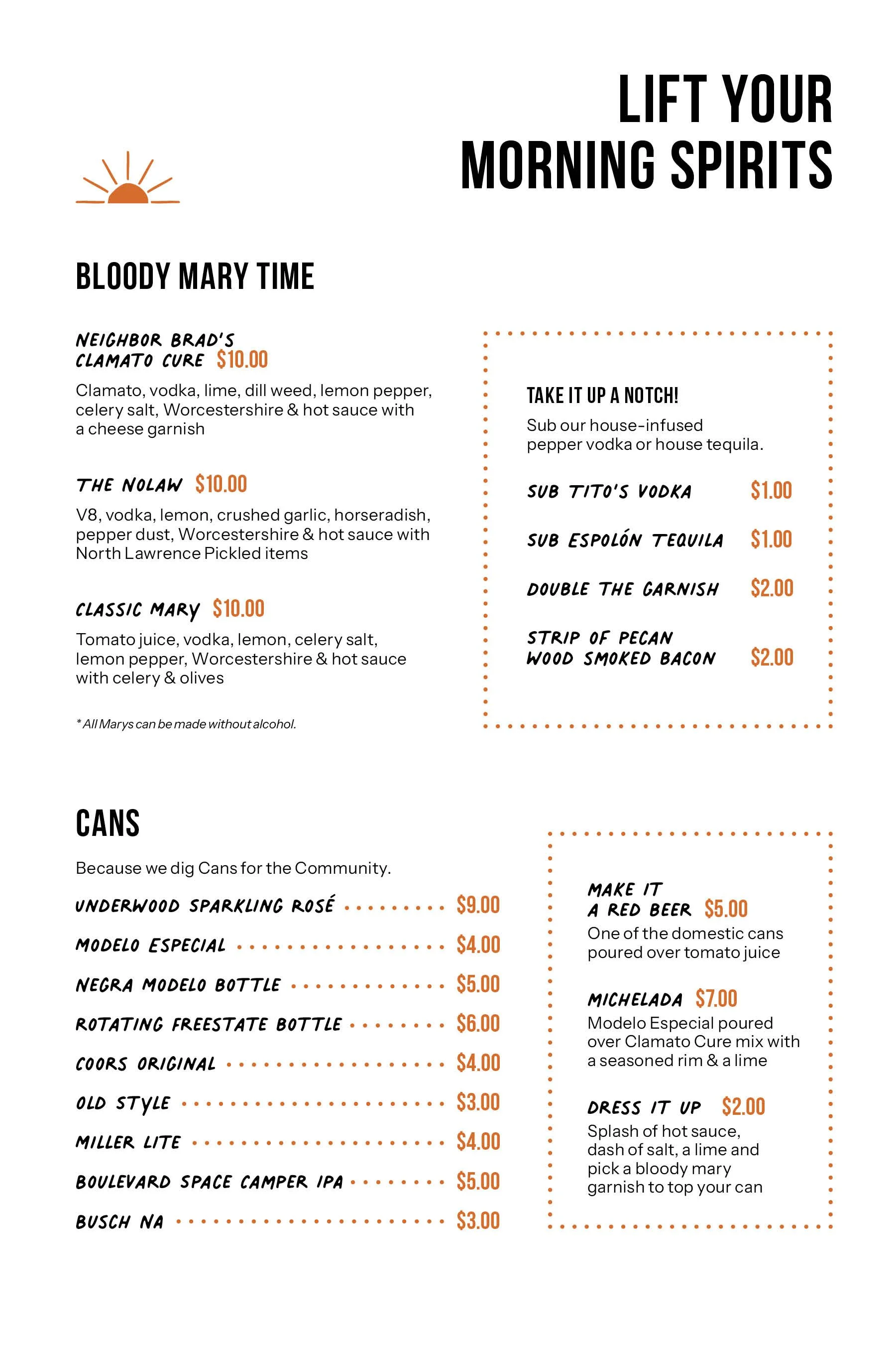 Come in to see our latest lineup of bloody marys, collaborative coffees, cocktails, and all your favorite bevvies.